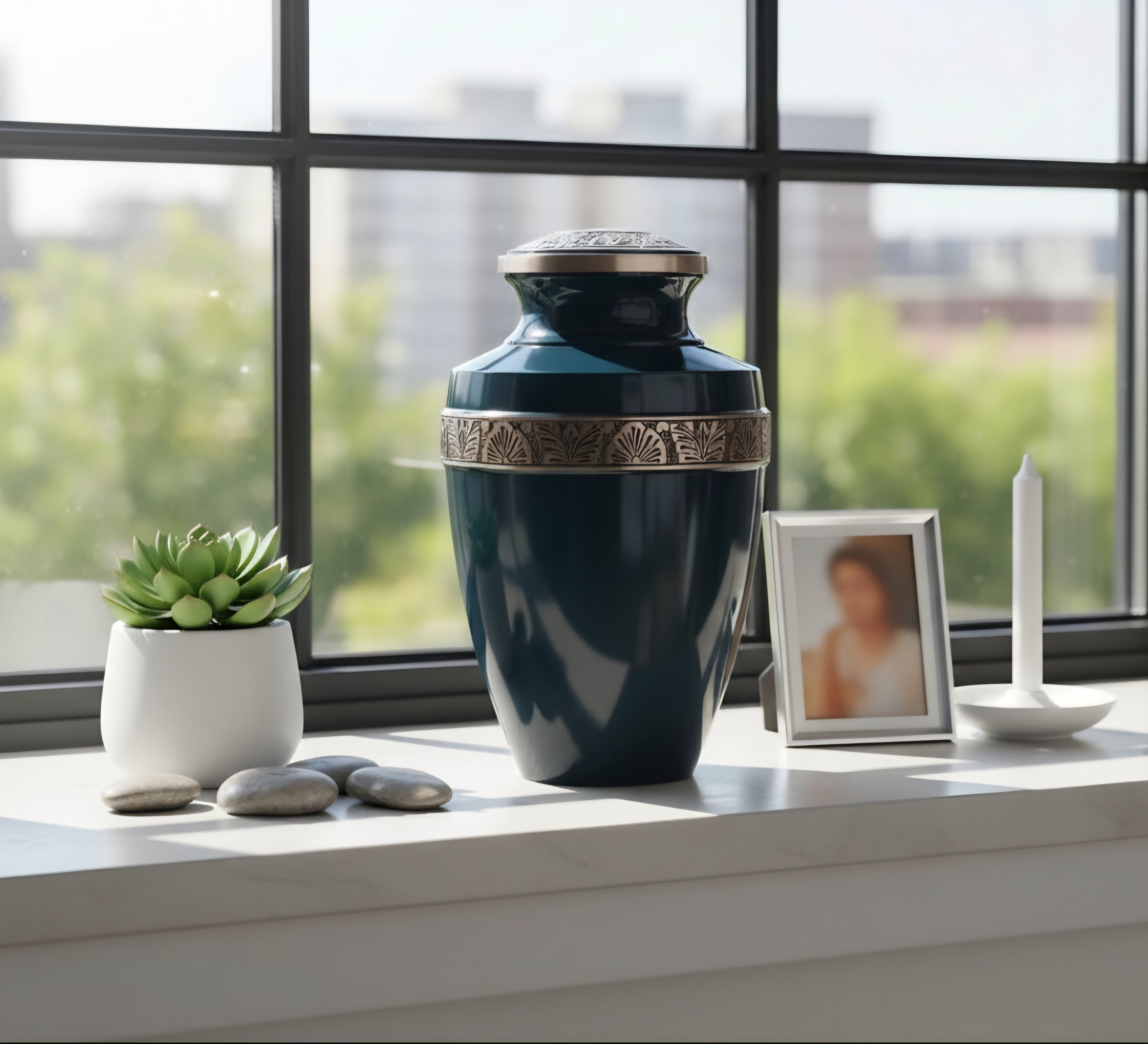Ocean Blue & Pewter Brass Single Ashes Urn: (Adult/Keepsake Sizes)
